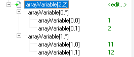 A slice is a portion of an array that is identified by defining which dimensions are variable and which are constant. Slices can be any dimension as long as they are within the dimension of their original source. For example, given array[4,4] (an array with 4 rows and 4 columns), a slice which is the first row can be defined as array[0,*]. This means fix the row dimension at 0 and vary columns. Similarly, the first column can be defined as array[*,0].
