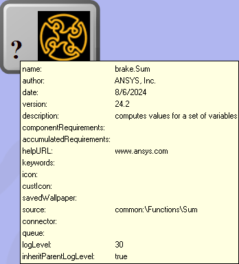display the tooltip for the component. This tooltip lists all defined metadata for