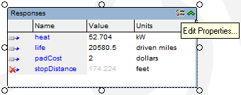 A data monitor allows you to drag variables from the Component Tree into the Analysis View. The values of the variables will update as the workflow runs. The data monitor can be linked to a ocmponent and can be dragged around and positioned. Click the Edit Properties button to edit the data monitor's name and other properties.