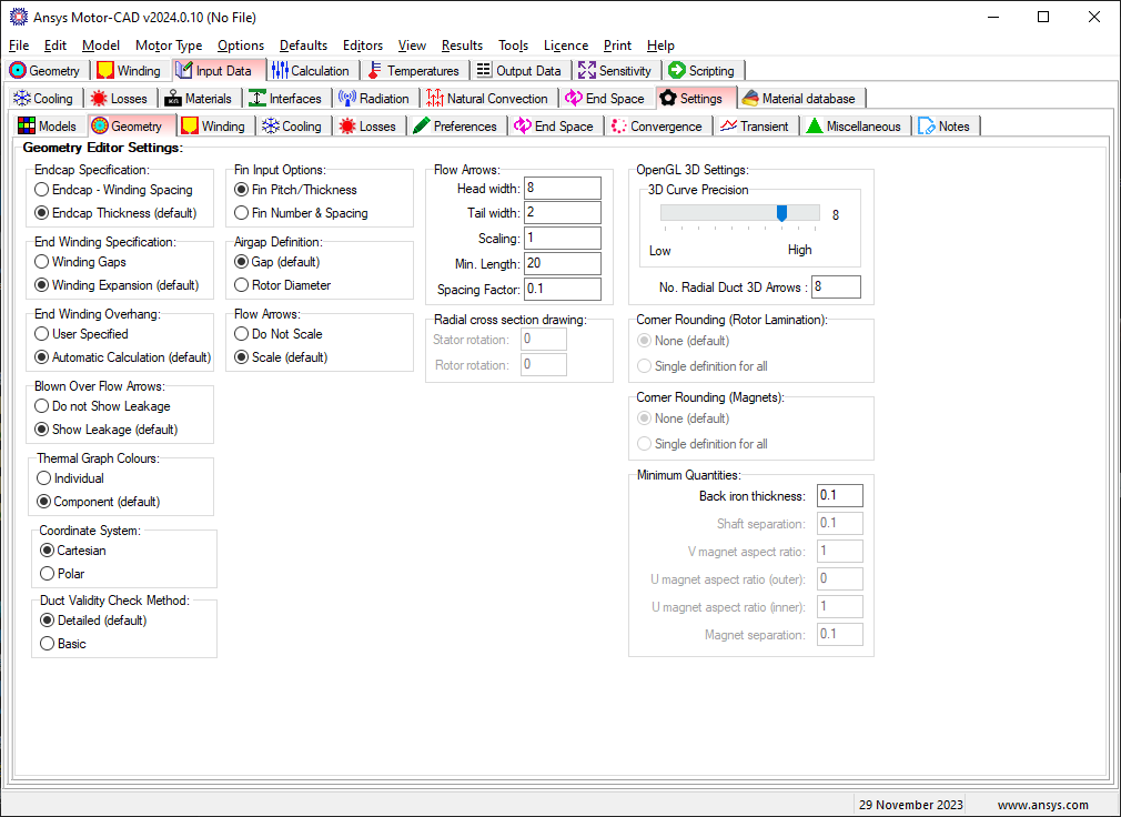 The flow arrows sizes displayed in the radial and axial cross sectional views (see Machine Cooling Flow Paths) can be set using the above interface.