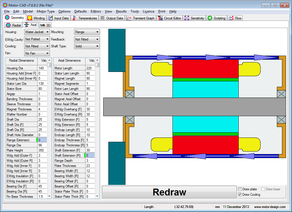 Housing Water Jacket cooling system of the machine is enabled by selecting the Housing Water Jacket option from the Cooling Options. The cooling system can be used with either housing flow or with stator duct flow.