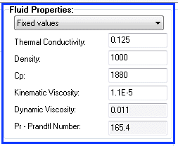 Edit boxes for setting the Spray Cooling fluid thermal conductivity, density, specific heat capacity and kinematic viscosity.