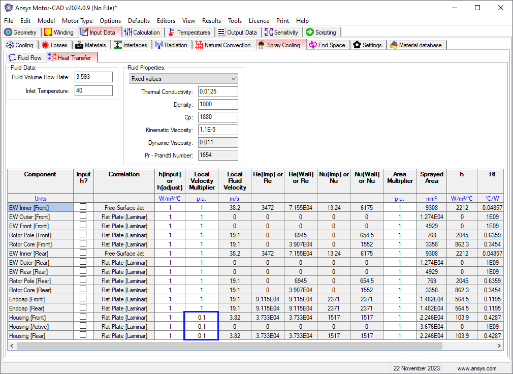 - Convection Correlation - Indication of the Spray Cooling Convection Correlation formulation used to calculate h of the particular motor component surface
