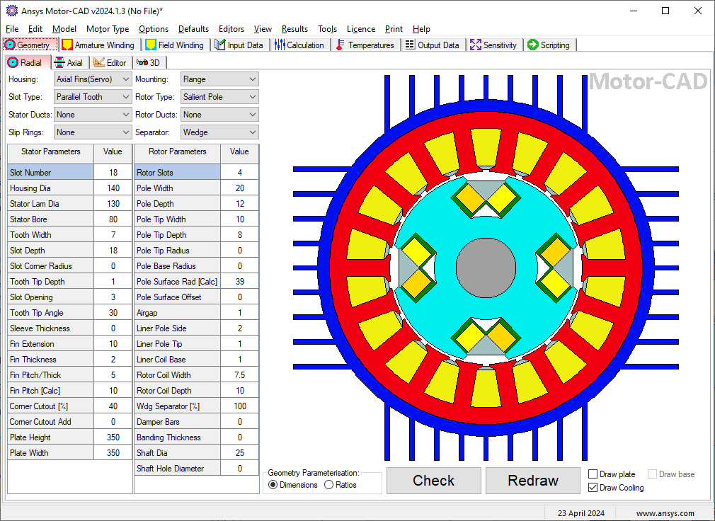Module of Motor-CAD for the thermal design of Synchronous Machines (SYNC).