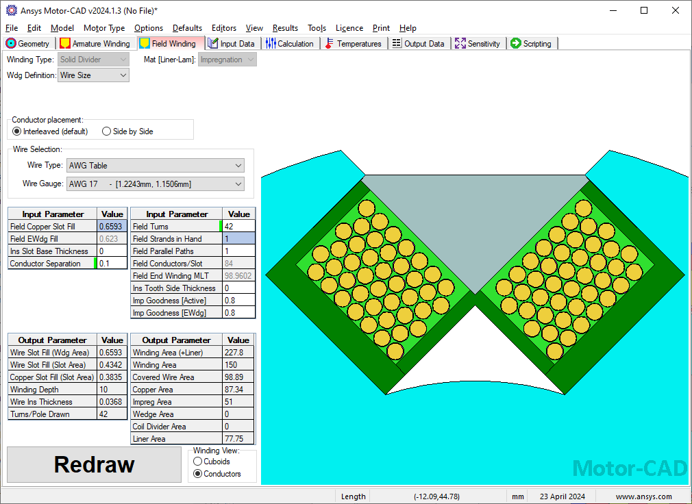 The field winding is defined in the field winding editor shown below :