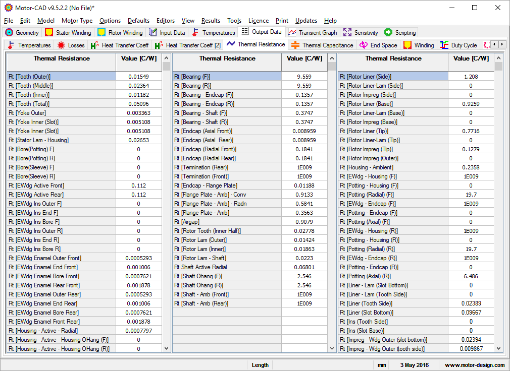 The thermal network resistances are displayed in the [Output Data] as shown below: