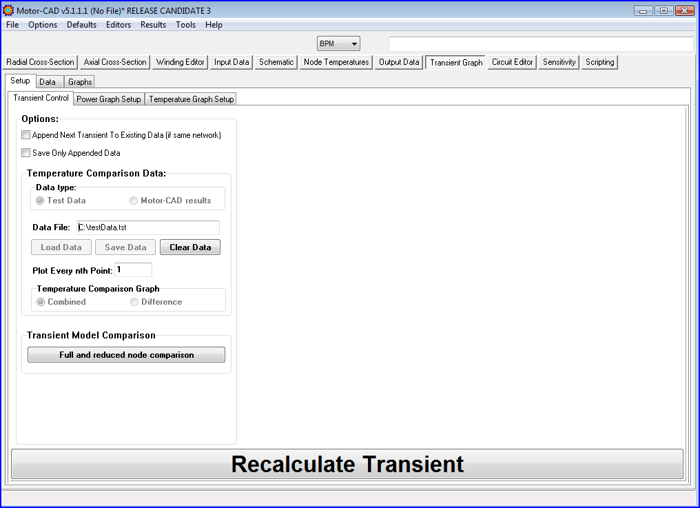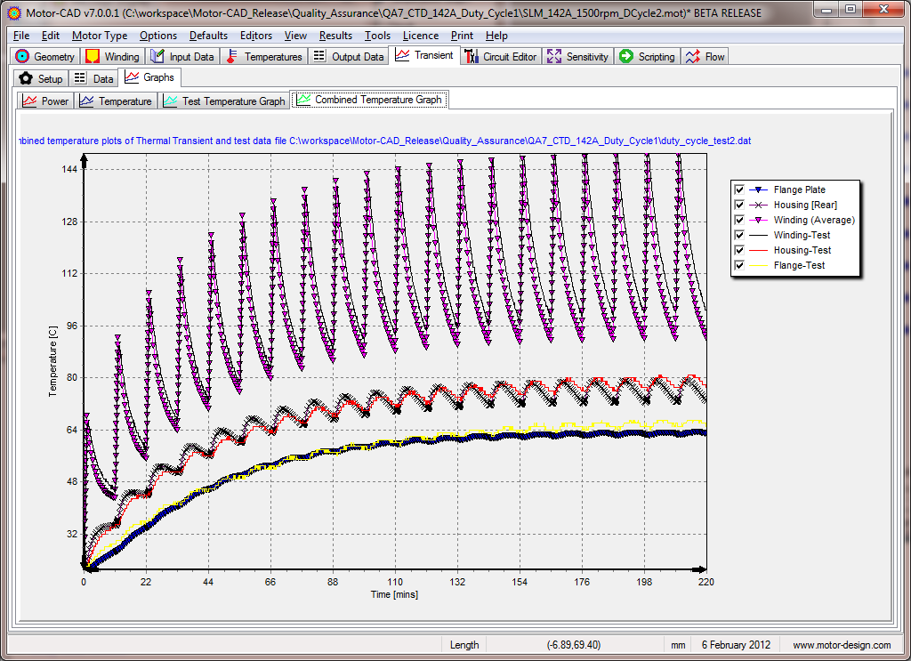 This option is used to select the file in which transient data exists that is to be plotted on the calculated transient graphs, i.e. the Combined Temperature Graph as shown below: