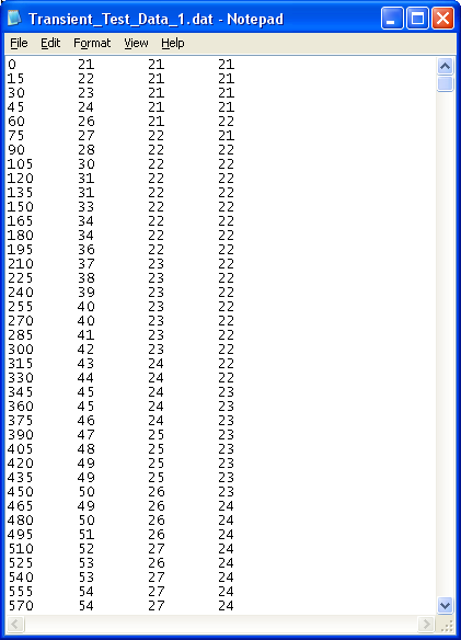 The file format is as shown below, i.e. 1st time column(seconds) followed by temperature columns:
