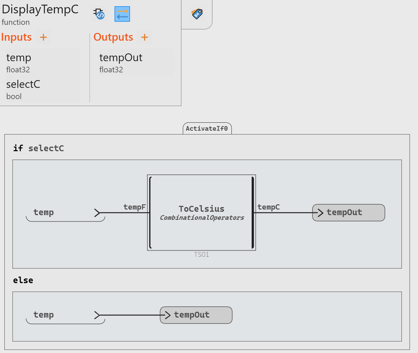 (first one) is only active, tempOut = ToCelsius(temp) and so
