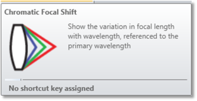 Discussion This is a plot of the shift in back focal length with respect to the primary wavelength. At each plotted wavelength, the shift in image space required to reach focus for that color marginal ray is computed. The shift distance is computed in the same media (glass or air) as the surface prior to the image surface. This plot may not be meaningful for non-paraxial systems.