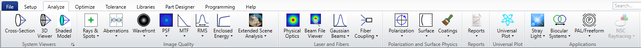 This tab provides access to all of OpticStudio's analysis features in Sequential Mode. Almost all imaging system design is done in this mode. Analysis features provide detailed performance data over a wide range of requirements. Analysis features never change the underlying design, but provide diagnostic information on the design that is used to guide any required changes.