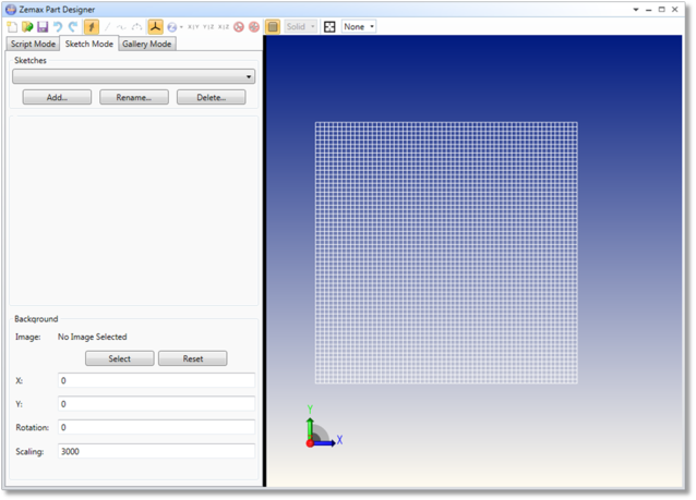 Begin by opening the Zemax Part Designer and navigating to the sketch mode.