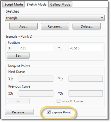 The exposed points will appear in the non-sequential mode editor as highlighted. In this case, the points were renamed to "+Xsketch" and "-Xsketch"