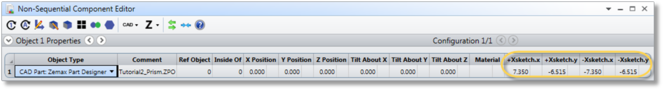 Upon opening the file, the Non-sequential Editor should expose the x, y coordinates of the 2 selected points. Each value is represented by 1 Parameter within the Editor, so a total of 4 variables should appear.
