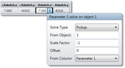 The y coordinates of these control points can be ignored as they will remain fixed. Finally, Parameter 1 (+Xsketch.x) must now be made into a variable to be used for optimization.