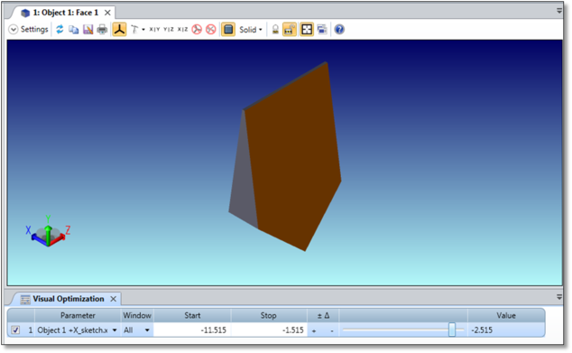 Using the Visual Optimizer slider to adjust the shape of the Prism