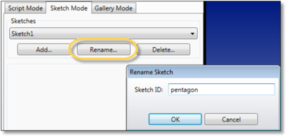 Add a single sketch to the part file by clicking the "Add..." button located below the empty sketch list. This will add an empty sketch entitled "Sketch1" to the list box. Rename this sketch to "pentagon" by clicking the "Rename..." button next to the "Add..." button.