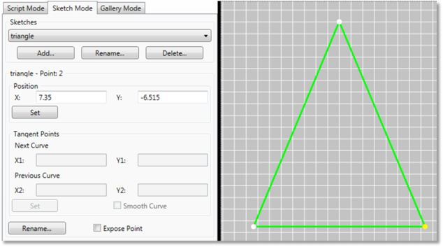 Re-enter Sketch Mode and add a new Sketch titled, "triangle". Using the line tool, plot the following points: