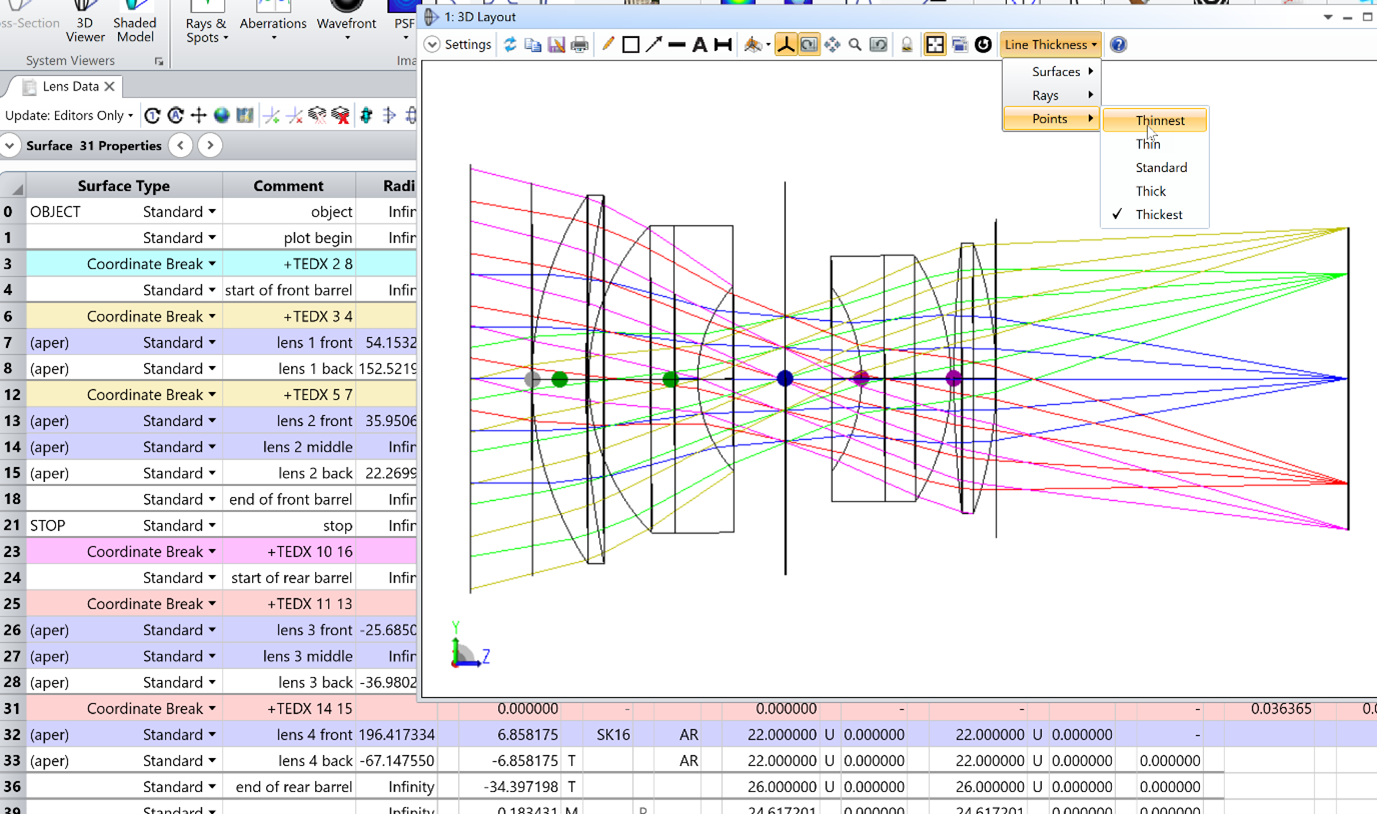 A new feature to the Export CAD File tool allows you to export filtered rays to help your CAD counterpart to properly align their mechanical parts outside of the ray path. In Sequential mode, users may export the chief ray for each field and wavelength, and in Non-Sequential mode users may export any filtered ray set, using the same options for filtering that are found in the NSC 3D Layout. The exported ray file imports into CAD and may be clicked on or referenced to during the "mating" CAD operation.