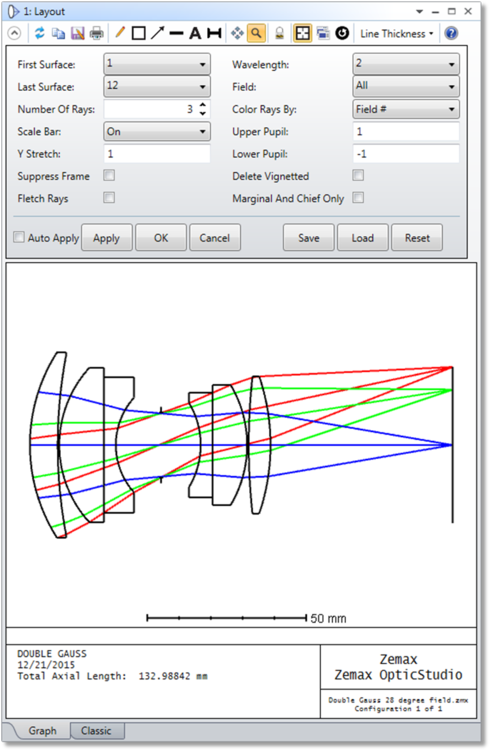 可在"设置(Setup)"选项卡>"系统配置选项(OpticStudio Preferences)">"绘图(Graphics)">"启用经典视图(Enable Classic View)"中打开或关闭"经典"视图。