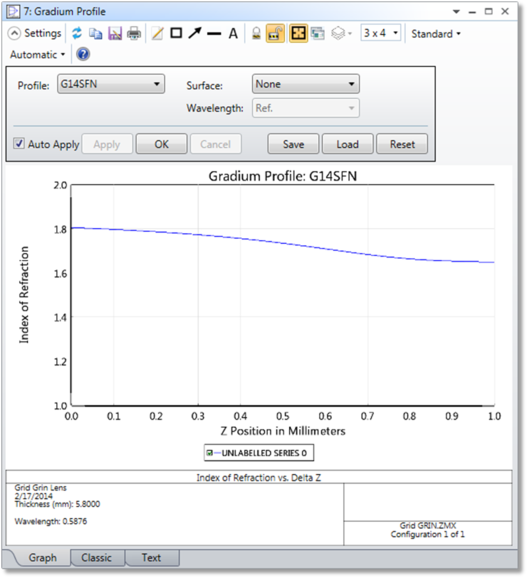 显示Gradium表面轴向折射率剖面。