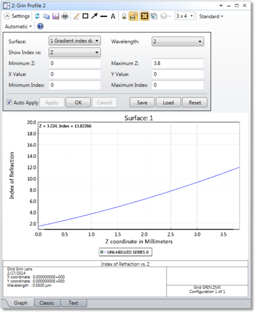 讨论:该图表显示了渐变折射率表面沿着X、Y或Z轴的折射率分布。