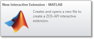 MATLAB按钮位于编程选项卡(Programing Tab)的ZOS-API.NET应用程序编译器(ZOS-API.NET Application Builders)组中。此选项用于访问一些模板,这些模板使用MATLAB编程语言作为API的启动项目。