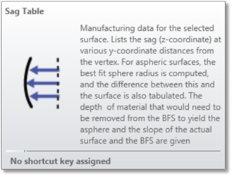 Contents 分析选项卡(序列模式用户界面)(The Analyze Tab (sequential UI mode)) » 偏振与表面物理组(分析选项卡、序列模式用户界面)(Polarization and Surface Physics Group (the analyze tab, sequential UI mode)) » 表面(Surface) » 矢高表(Sag Table)Print page 矢高表(Sag Table) 下一部分: 表面矢高(Surface Sag) « 表面(Surface)表面矢高(Surface Sag) »