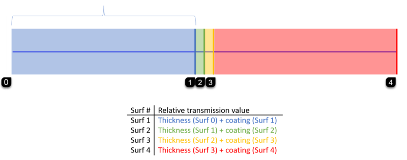 对于此分析,表面1的相对透过率计算直接在表面0的界面之后开始,并在表面1的界面之后直接结束。