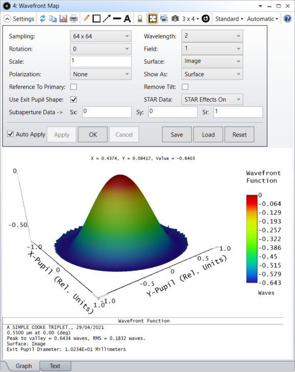 STAR数据(STAR Data) STAR效应开启显示启用STAR效应的波前图。差别显示启用STAR效应并除去原始波前误差的波前图。