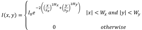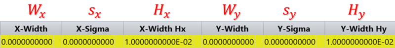 • Hx is the "supergaussian" factor for the X direction, with similar definitions for the Y subscripted values. Note if Hx is 1.0, then a typical Gaussian distribution results.Both Hx and Hy must be ≥ 0.01.
