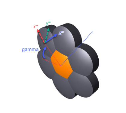 次に、アレイのローカル座標の Z 軸を中心として、そのオブジェクトが角度γだけ回転します。アレイの最初のエレメントは、この位置になります。