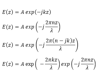 - E(z,t) = A cos(-wt + kz) および n = n + iK