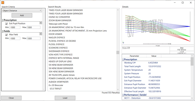 [読み込み] (Load) 選択したレンズを現在の OpticStudio インスタンスに読み込みます。