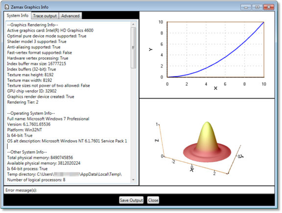 システム診断ツールでは、グラフィックのレンダリング情報と、使用しているオペレーティング システムに固有のその他の診断情報が表示されます。