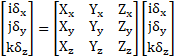Xx、Xy、Xz值是定义X’轴(参数8、9和10)的余弦,Y’和Z’也以同样的方式定义,Δ1值是沿轴向的元件间距(参数5、6和7)。请注意,方向余弦向量一般会自动归一化。一旦阵列元件被定位,即可执行关于X、Y和Z轴的局部旋转,方法与通常的坐标旋转相同(参阅"放置物体(Object Placement)")。