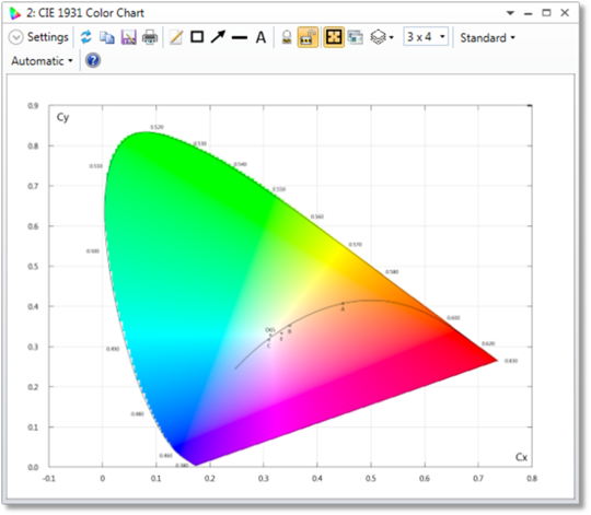 该功能显示基于CIE 1931色彩空间的色度图。