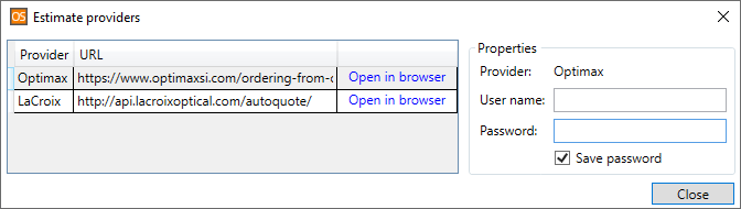 配置供应商(Configure providers) - 配置您希望从中获取成本估算资料的供应商。打开以下对话框: