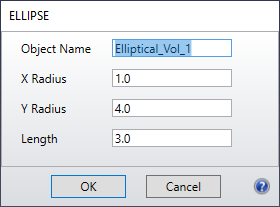 Contents 零件设计选项卡(The Part Designer Tab) » 插入组(零件设计选项卡)(Insert Group (the part designer tab)) » 物体(Objects) » 椭圆体1(Elliptical Volume 1)Print page 椭圆体1(Elliptical Volume 1) ELLIPSE name, rx, ry, L 创建一个椭圆柱体,其前后表面为沿x轴方向和y轴方向具有特定半径值的椭圆,并沿z方向延伸的长度为L。L可为正也可以为负,但不能为零。原点位于前表面中心。 下一部分: 椭圆体2(Elliptical Volume 2) « 矩形复合抛物面聚光器(Rectangular Compound Parabolic Concentrator)椭圆体2(Elliptical Volume 2) »