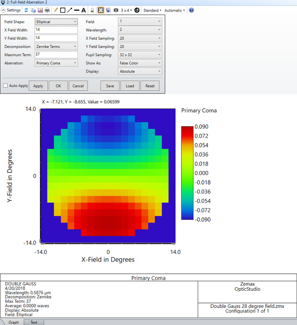 全视场像差分析将显示全视场下的Zernike系数。如欲了解更多信息,请参阅以下"详述"部分。