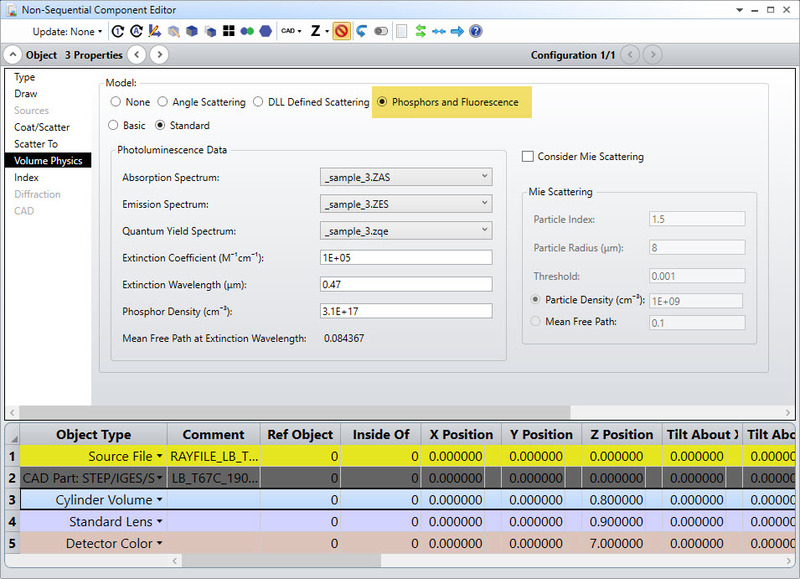 光致发光和Mie散射参数的结合,可以模拟含有荧光或磷光物质的散射(或非散射)材料。