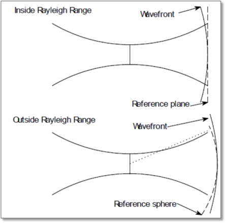 相位的符号是正的,如果波前在参考面"右侧",即为局部Z轴正方向。对于在瑞利范围内沿z轴正向传播的光束,相位斜率是负的,因为波前在参考平面的左边。刚好在瑞利范围之外时,相位斜率是正的,因为波前现在在参考球面的右边。