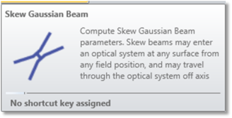 计算倾斜高斯光束参数。倾斜光束可以从任意视场位置入射到光学系统的任一表面,可以离轴传播。倾斜高斯光束参数可以通过实际光线进行计算,并且需考虑像散,但无需考虑高阶像差。另请参阅"近轴高斯光束"和"物理光学传播"。