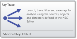 The Ray Trace Control is used to launch and trace rays for analysis using defined sources, objects, and detectors. The controls on the dialog box are described below.