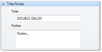 Notes The notes section allows entry of a few lines of text which is stored with the lens file.