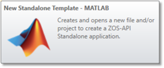 MATLAB按钮位于编程选项卡(Programing Tab)的ZOS-API.NET应用程序编译器(ZOS-API.NET Application Builders)组中。此选项用于访问一些模板,这些模板使用MATLAB编程语言作为API的启动项目。