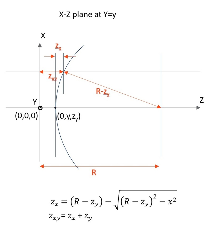 Where zt is the base toroidal sag and the Zernike Standard terms are defined in the section " Zernike Standard Sag ", and are entered using the Import section of the Lens Data Editor. Note if the Y-Z radius is set to infinity, a surface with power in x but not in y can be described, therefore, the cylinder may be oriented in either direction. The other parameter columns are used for the optional aspheric coefficients, as specified in the following table. If aspheric coefficients are required in the X direction, then rotate the toroid with a pair of coordinate break surfaces and rotate about Z. If different aspheric surfaces are required in both the X and Y directions, see the "biconic", "polynomial" and "extended polynomial" surfaces described elsewhere in this file.