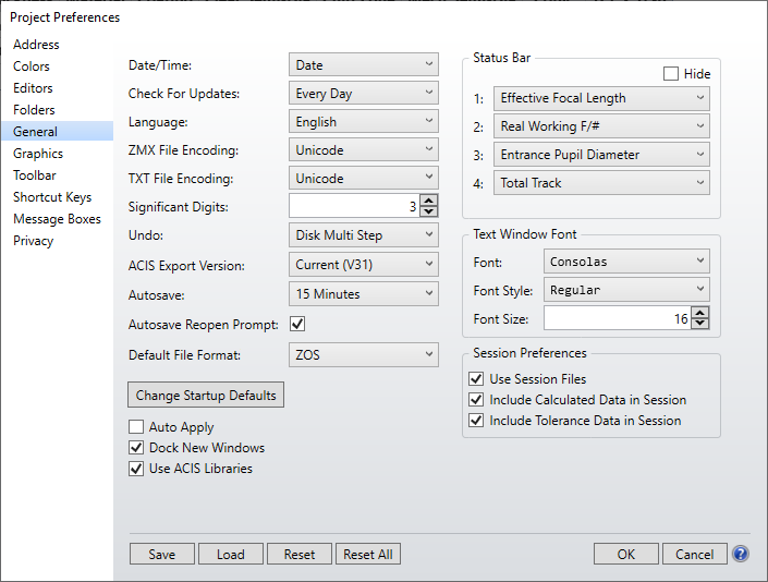 Text Window Font The font type, style, and size to be used for text based analysis windows, such as a ray fan text listing. To change the text displayed in the graphics based analysis windows see the "Graphics" section of the OpticStudio Preferences. To change the text displayed in the editors see the "Editors" section of the OpticStudio Preferences.