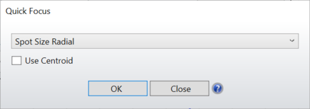 This feature adjusts the thickness of the surface prior to the image surface. The thickness chosen is that which minimizes the RMS aberration. Note that for non-axially symmetric systems, the Quick Focus tool only works if the chief ray can be traced for all fields.