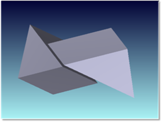 Polygon objects that form closed volumes must not contain any interior faces. Every face must lie on the exterior of the object, defining the boundary between the inside and the outside of the volume. To make an object that has a cemented boundary, such as a beam splitter, use two or more separate polygon objects and then place them in contact. For more information on placing objects in contact, see "Placing objects inside of, adjacent to, or overlapping other objects" .